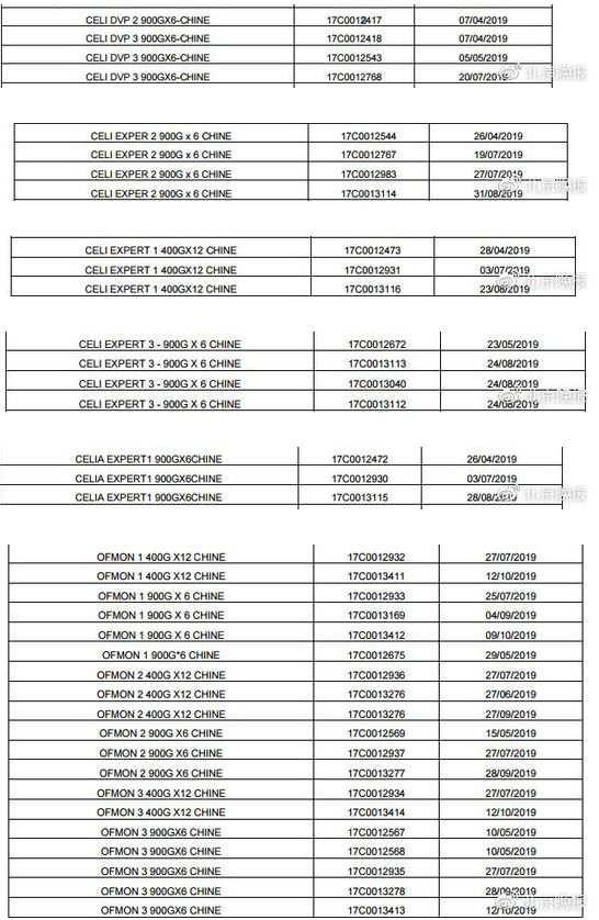 本报记者在法国官网查询发现,涉及中国的产品共有37批次,具体名单如下: