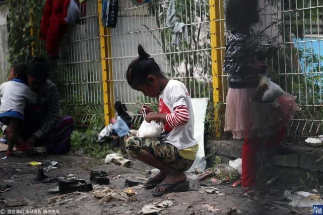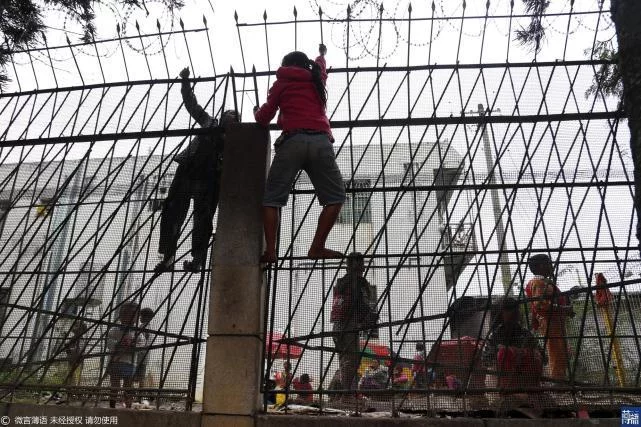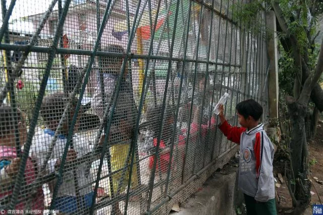游人特别多的时候,孩子们就会趁着边防军不注意翻过栅栏来向游人要钱。