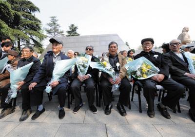 “南京大屠杀死难者遗属2014年清明祭”活动 | 新华社记者 孙参 摄