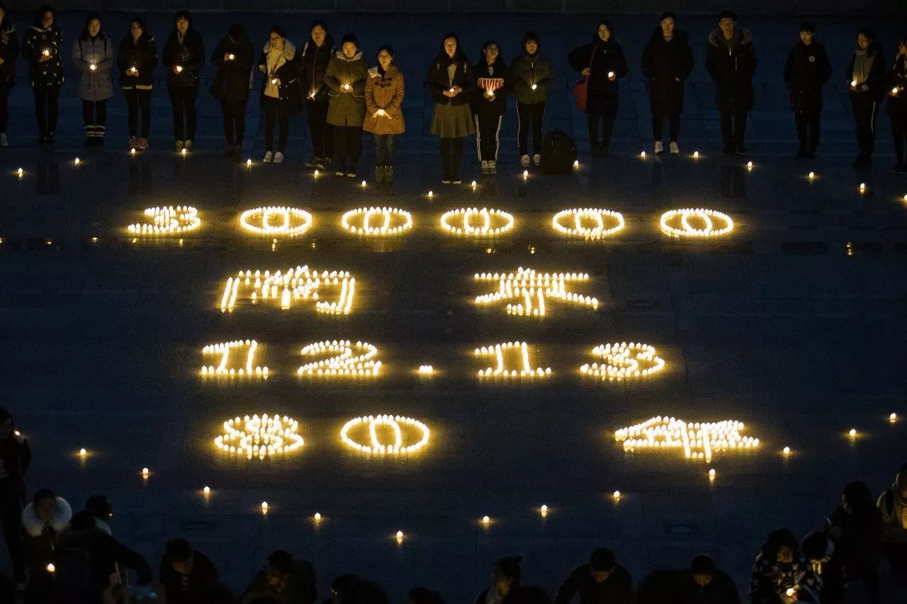 △2017年12月11日晚南京大学生烛光祭奠30万遇难同胞图/视觉中国
