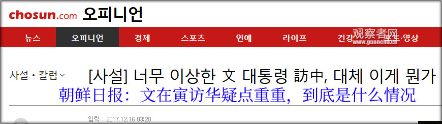 不遗余力,韩国保守派媒体唱衰文在寅访华