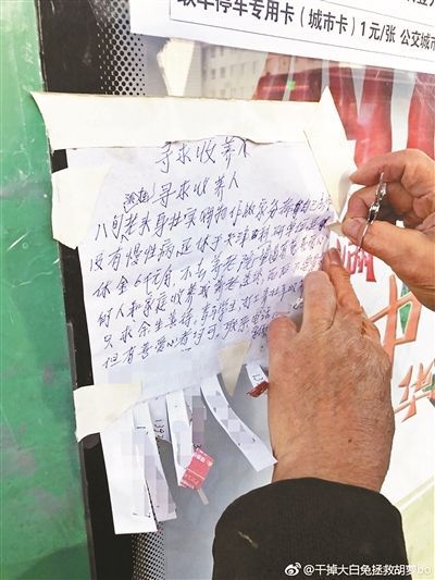 八旬老人贴条找人收养