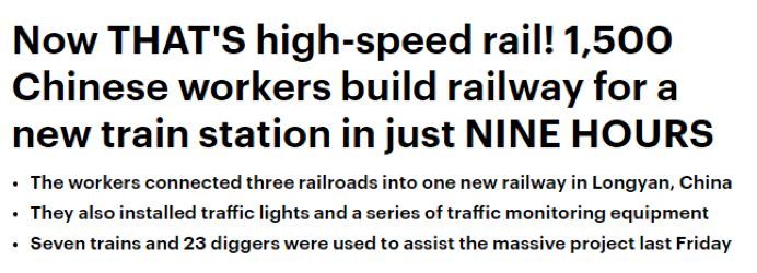 英国《每日邮报》:这才是高铁!1500名中国工人在短短9小时内为新火车站修建铁路。