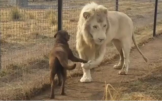 一名外国网民近日在网络分享了一段关于狮子和狗友好握手的视频,吸引了大量关注。