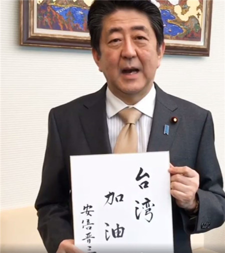 安倍题写“台湾加油”