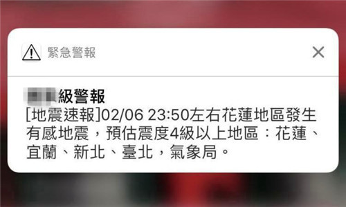 据台湾联合新闻网报道,6日花莲发生强震,很多人都收到台当局的官方警报;此外,民间开发的“中保集团”与地震工程研究中心也合作开发出现地型的地震预警服务,速度比官方级警报还快。