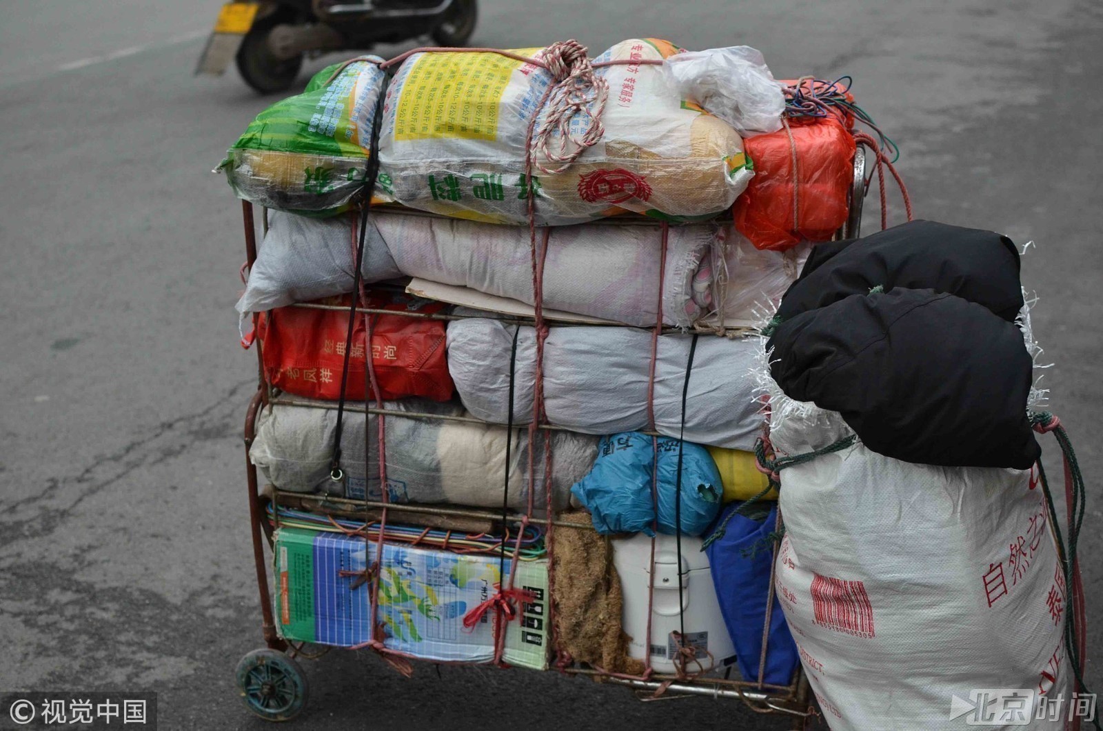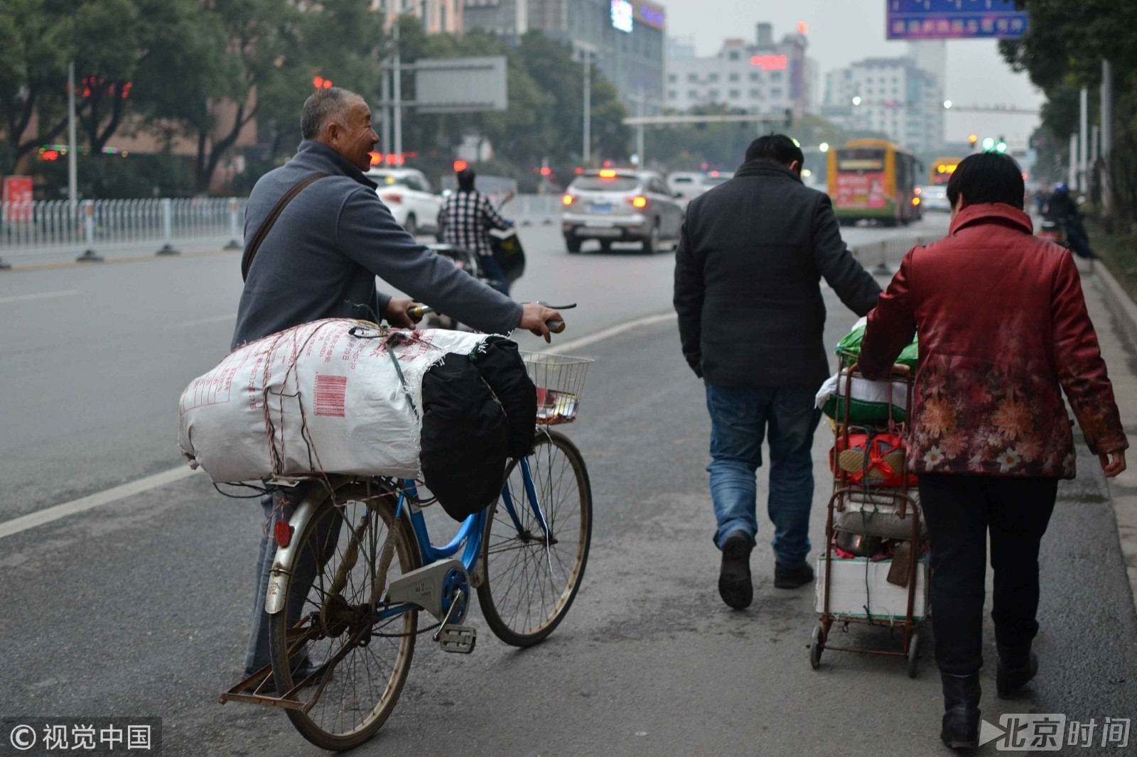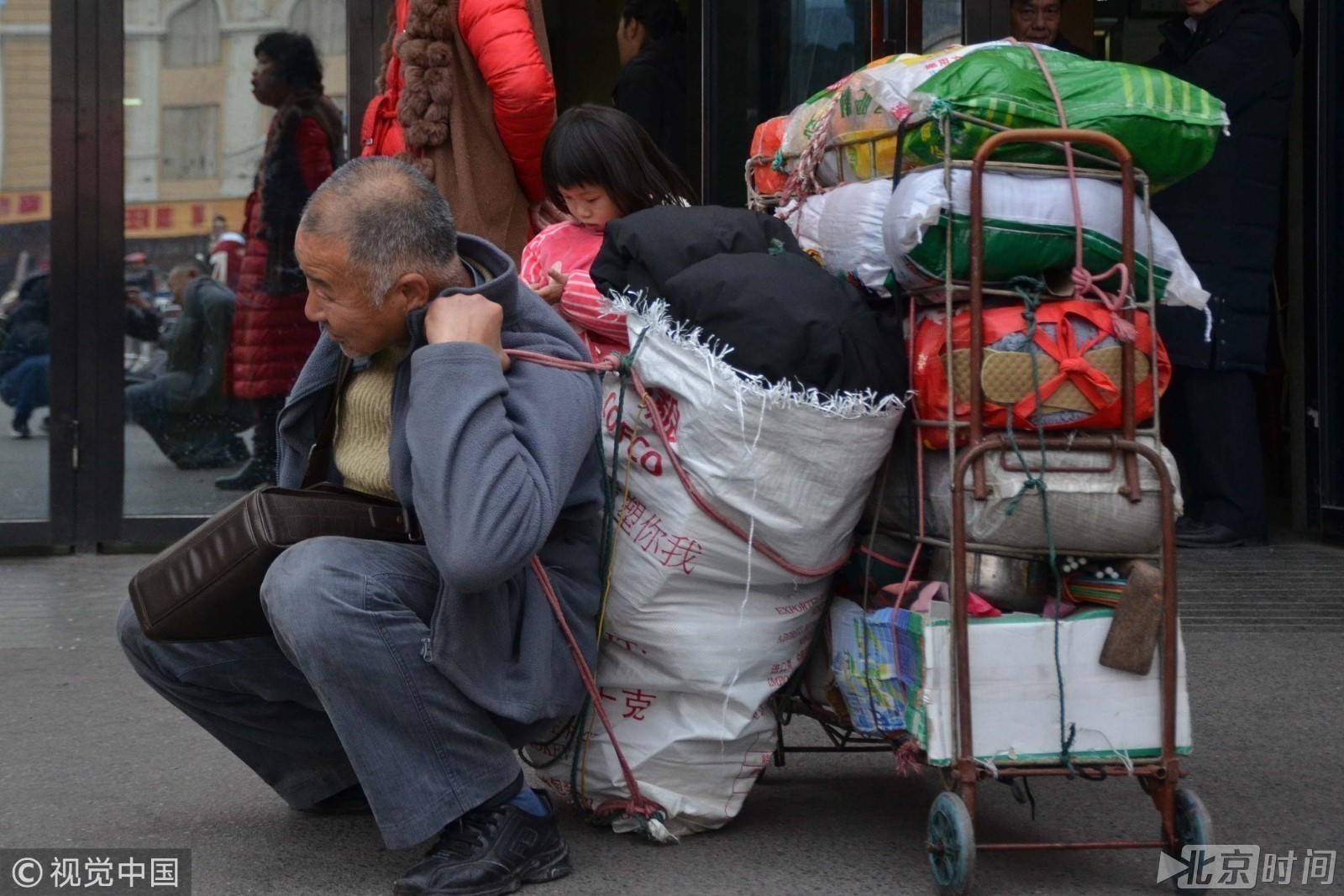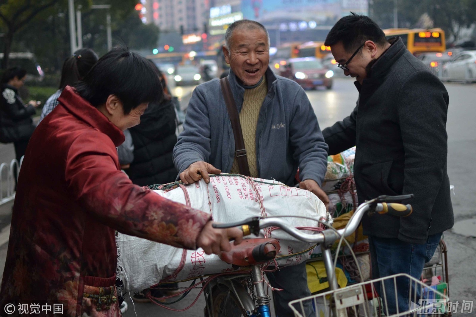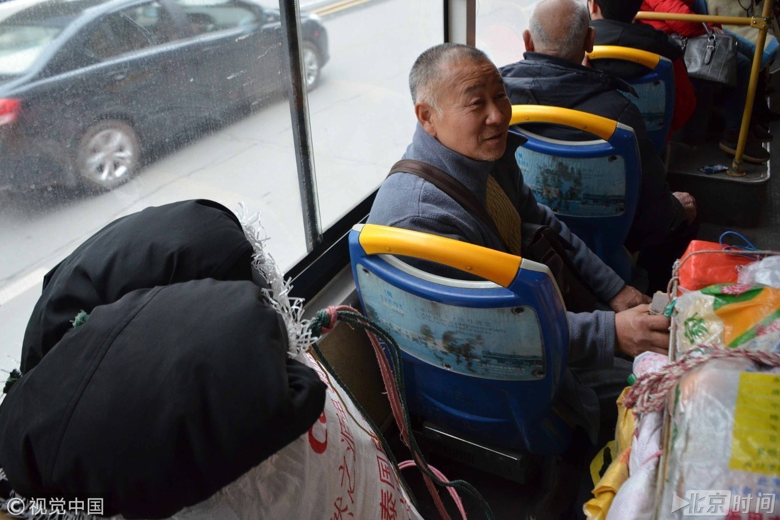老人跨两省,转三次车,耗了十多个小时,而且随身携带200多斤年货(家乡特产),只为与家人团聚过大年。