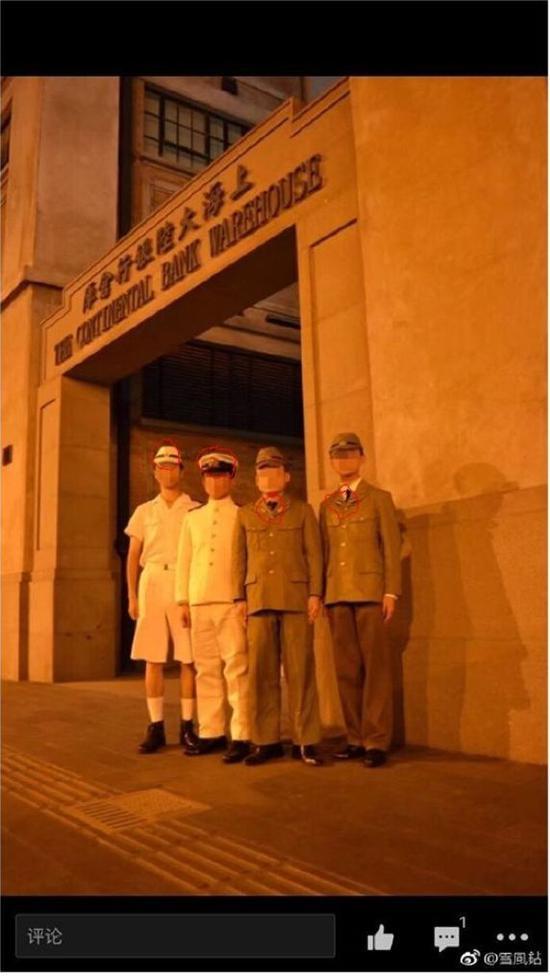 2017年8月发生的"精日"军服迷在上海四行仓库门前合影事件。