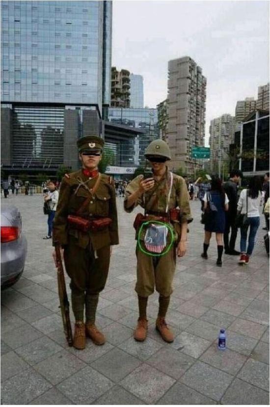 2015年成都漫展上,几名“精日”军服迷身着旧日军军服入场。
