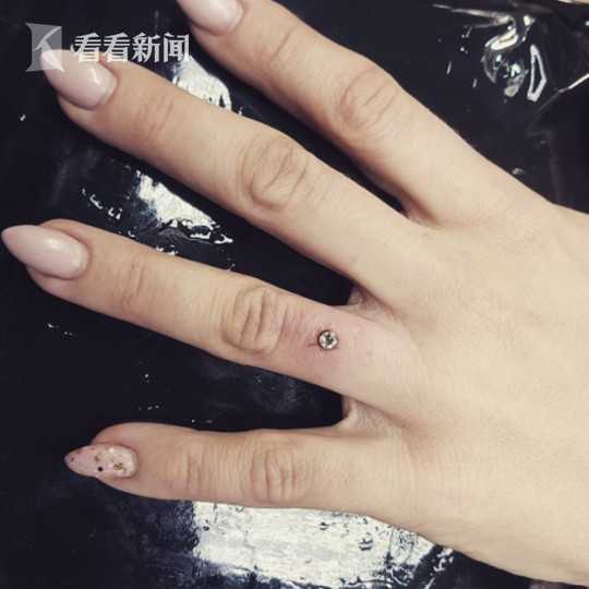 据英国《每日邮报》3月17日报道,美国一些2000年出生的千禧一代,最近把订婚戒指玩出了新花样。他们摈弃传统的婚戒模式,直接将钻石镶嵌进手指头上。