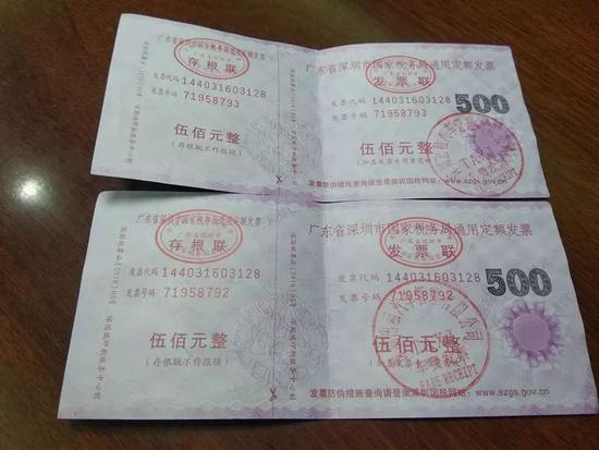据报料人介绍非法营运车辆上的司机在乘客还未付款前就给乘客提供了两张面额为500元的发票
