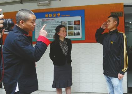 4月13日,休假回到安康家园的陈一文见到胡园长给他行了个标准的军礼。