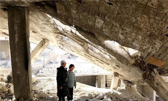 叙利亚大马士革小镇千疮百孔,孩子避难所中生存。
