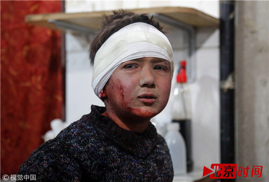 ▲2018年3月5日,叙利亚政府军空袭东古塔区,受伤居民在医院接受治疗。