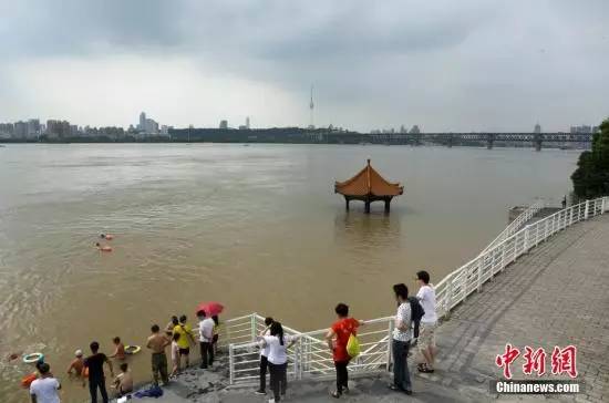 长沙橘子洲观光台被淹。中新社记者杨华峰摄