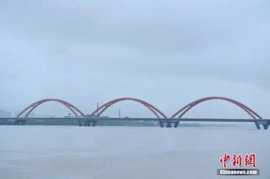 洪水淹没了长沙三汊矶大桥大部分桥墩。 中新社记者杨华峰摄