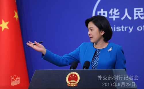 中国外交部发言人华春莹8月29日在就美韩加紧部署“萨德”一事答记者问时说,中方强烈敦促美韩重视中国等地区国家的安全利益和关切,立即停止有关部署进程,撤除相关设备。