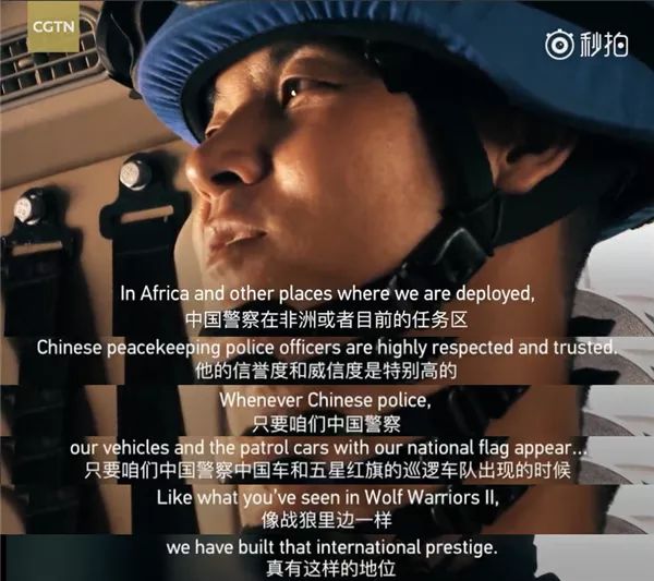 近日,中国国际电视台记者走进了山东东营市的公安部常备维和警队,维和警察常林(Chang Lin,音译)表示,他在非洲还没开过枪,因为中国警察在非洲和目前的任务区,信誉度和威信度是特别高的,只要中国警察、中国车、五星红旗出现,就像《战狼2》里一样,有一定地位。