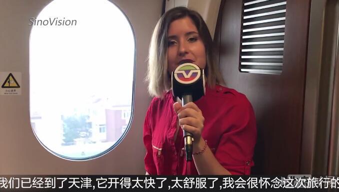 萨拉来自美国中文电视台,这是她第一次来北京,也是第一次体验中国高铁。进入车厢后,她就不由地张开了嘴巴。