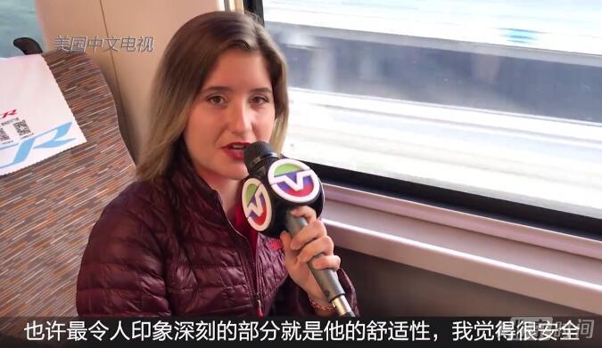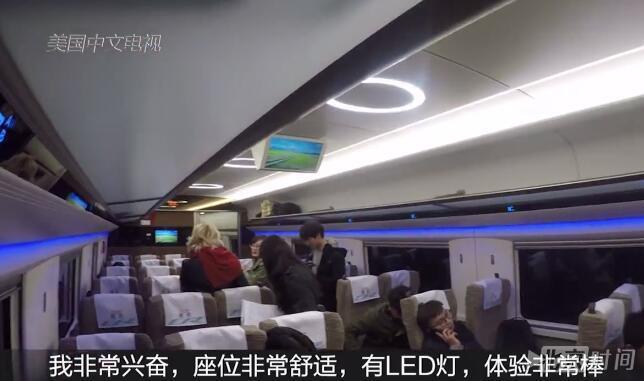 高铁里的各种设施让萨拉大为惊叹,并直言称,美国都没像这样的火车。