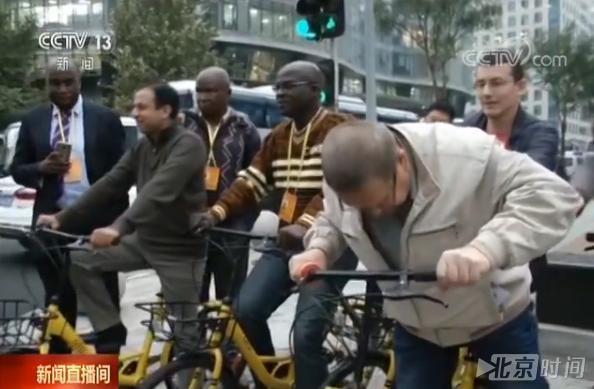与此同时,互联网新科技革命正在以前所未有的方式影响并改变着中国百姓的生活,这也是外国记者关注的焦点之一。在北京街头,他们还体验了一下共享单车。
