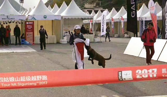谁知道,一安保人员的中华田园犬突然冲了出来,跳起强行叼住了选手手中的太阳旗。